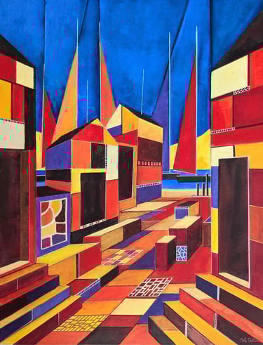 Cabanes et cubes - Acrylique