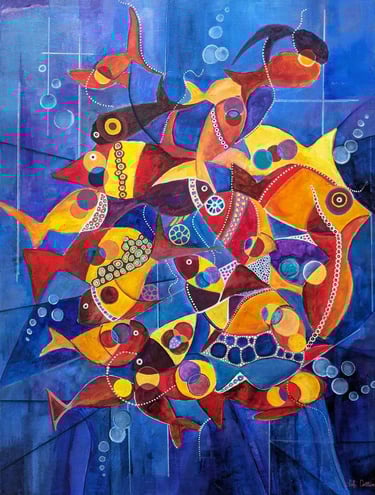 Bulles et fretin. Acrylique. Format 61X46 Vendu.