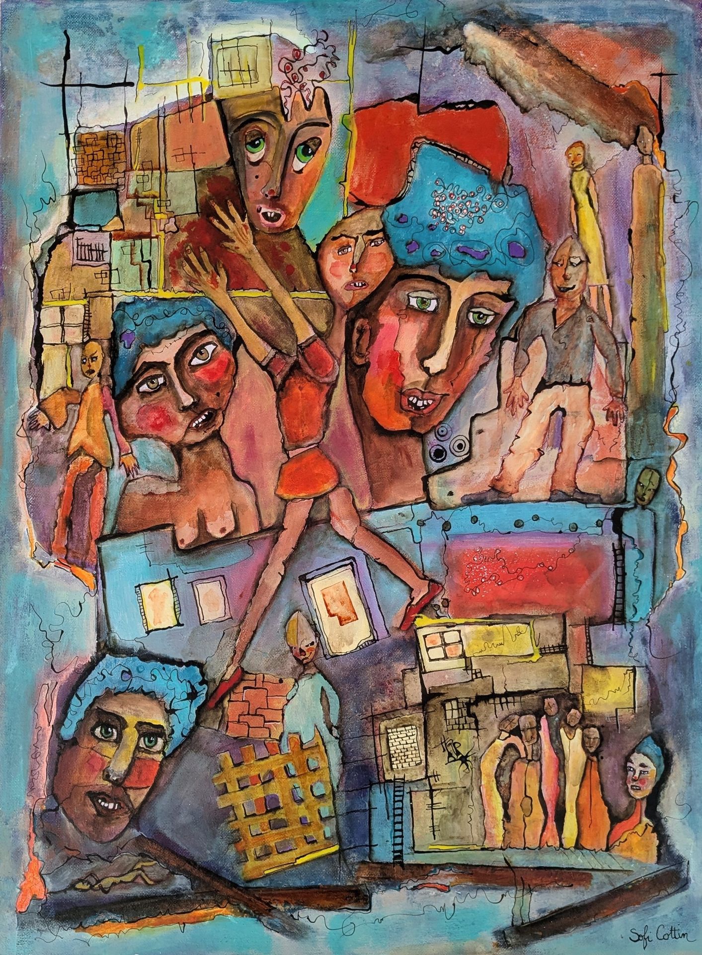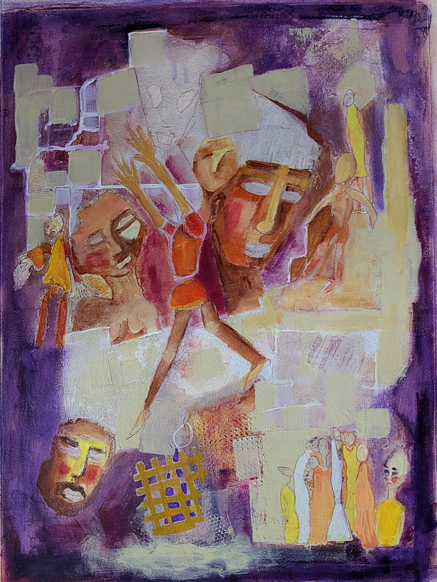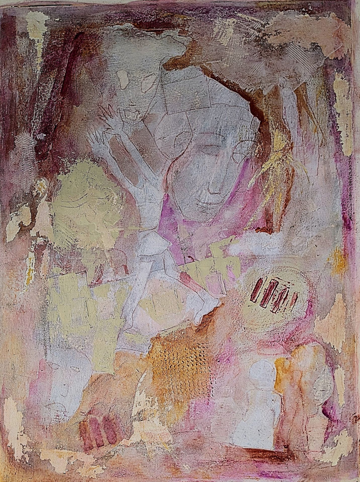 Pour commencer je procède à une composition "intuitive" de l'œuvre avec différentes techniques. Ensuite je contemple les formes qui apparaissent et qui vont se transformer au gré de mon inspiration et de mon imagination;